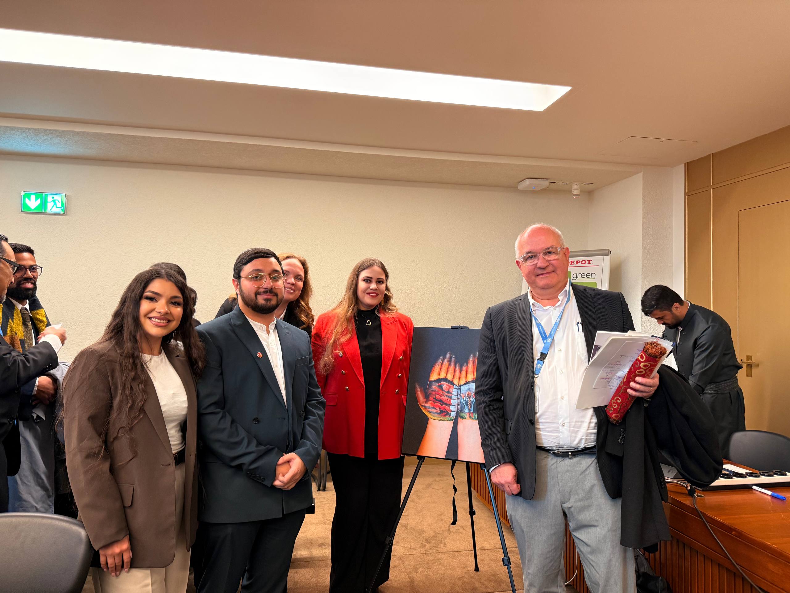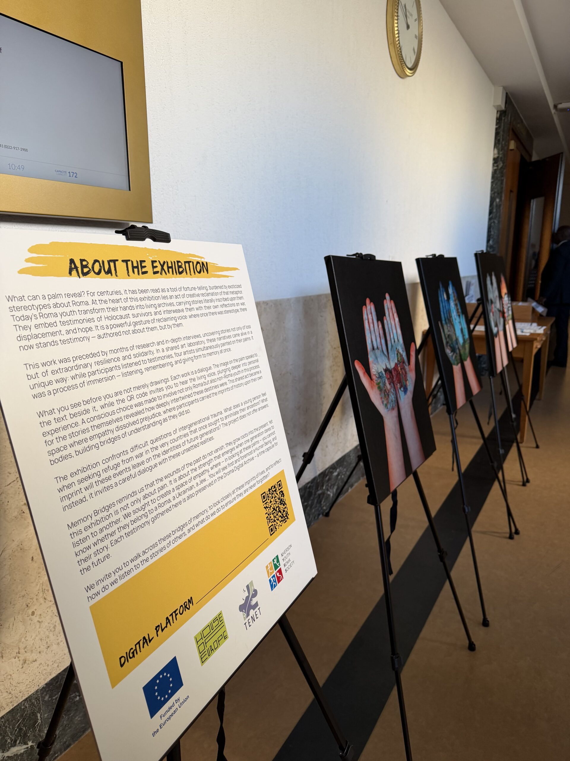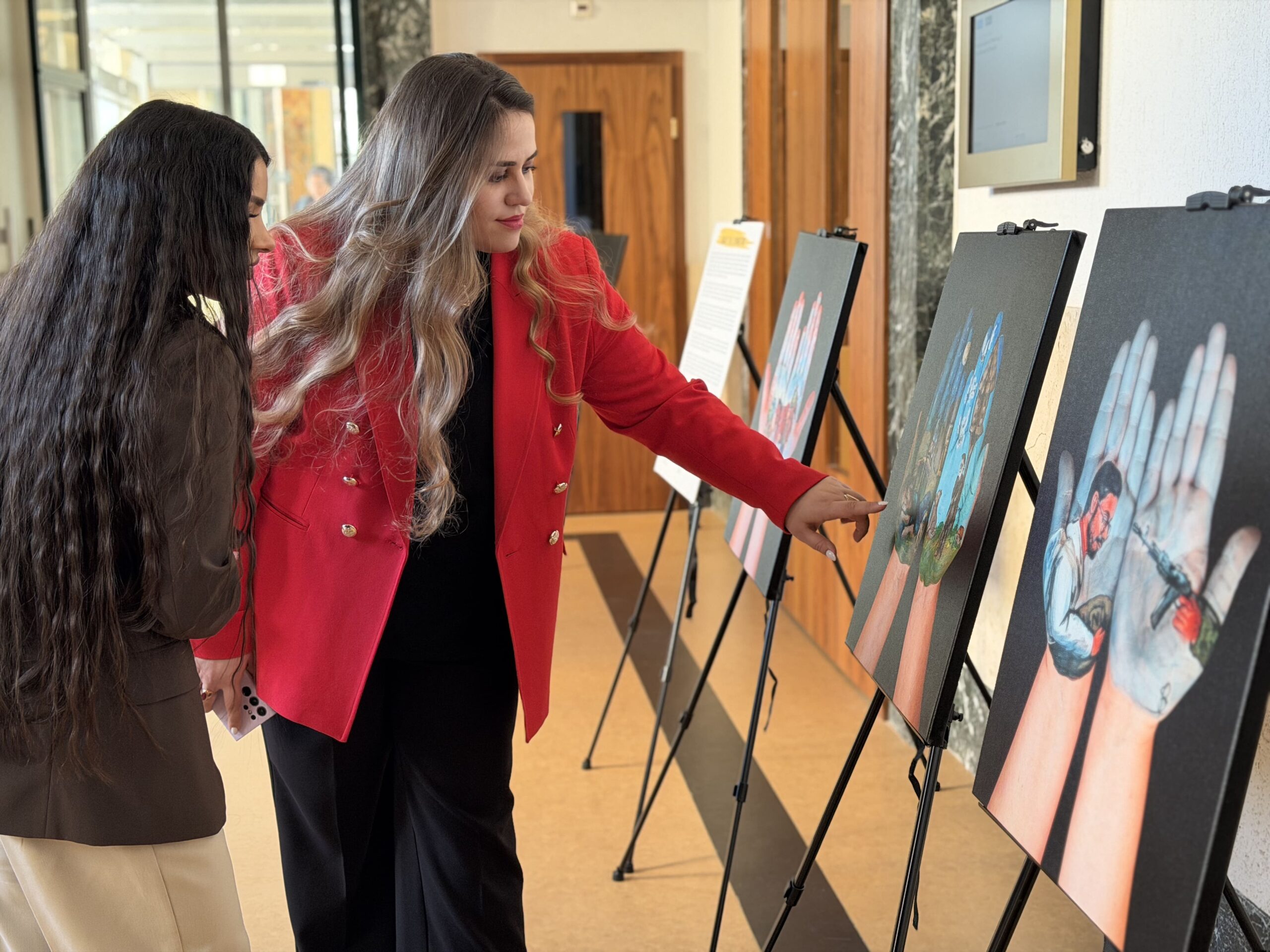 A real breakthrough was the presentation of our art project, Memory Bridges Thanks to the support of House of Europe, we brought 10 canvases to Geneva depicting palms with painted stories: 5 testimonies of the Genocide and 5 stories of the modern war.